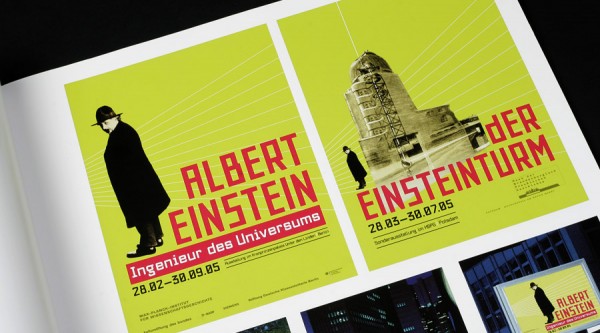 Entwürfe für zwei Plakate: »Albert Einstein – Ingenieur des Universums« und »Der Einsteinturm«; Die Entwürfe wurden nicht umgesetzt