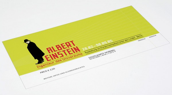 Entwurf für eine Eintrittskarte »Albert Einstein – Ingenieur des Universums«, nicht umgesetzt; Team VIERZIG A, Dessau-Roßlau, Ulrich Lange