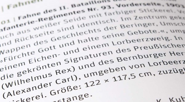 Katalogteil, typografische Details, Katalog »Wo die alten Dessauer dienten – Das Anhaltische Infanterieregiment No. 93«