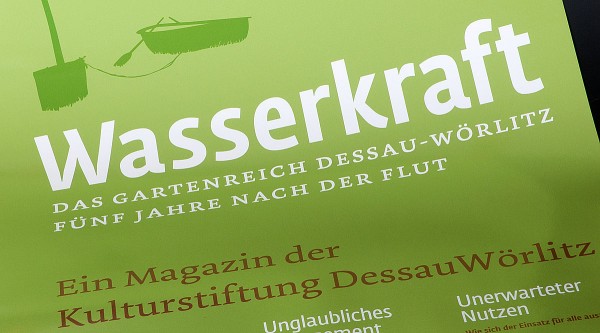 Plakat (Detail) zur Veröffentlichung des Magazins »Wasserkraft – Das Gartenreich Dessau Wörlitz fünf Jahre nach der Flut«